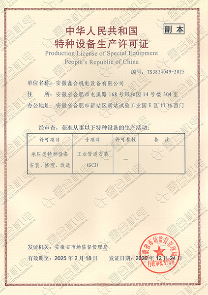 目前我公司具有建筑機電安裝工程專業承包一級資質、總承包二級、GC2壓力管道設計、施工資質。現有高級工程師5名、高級技師55名、工程師22名、助工25名、技術員22名、各類專業技師50多名,強大的技術力量及精良的施工隊伍,為客戶提供全方位服務。 公司本著“一切為了用戶”的經營理念,“以品質求生存、以誠信贏市場、以管理促發(fā)展”為要求,努力為廣大客戶提供專業,優(yōu)質、高效的服務。